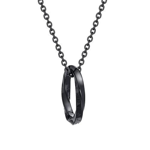 Rockyuのメンズネックレスは、ブラックのステンレス製で、60㎝のチェーンとヴァイキング文字ペンダントが特徴。金属アレルギー対応で、記念日や誕生日のプレゼントにも最適なかっこいいアクセサリーです。
