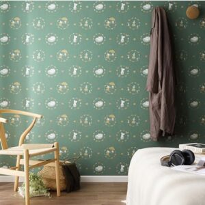 壁紙屋本舗 壁紙 のり付き MOOMIN ムーミン 北欧 アクセント クロス 壁紙の上から貼れる グリーン 緑 ミムラ ミイ リトルミイ スニフ FE-76691 巾92.5cm × m単位切売 防カビ リフォーム 張り替え 【受注生産品・キャンセル不可】