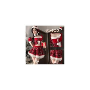 [Sekuee] 2025年版 クリスマス セクシー コスプレ サンタ サンタクロース 帽子付き セクシー レディース ランジェリー 過激 仮装 衣装 可愛い 萌え 撮影 スカート 6点セット (M)