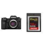 富士フイルムのX-H2Sは、ボディ内手ブレ補正付きで、高速連写40コマ/秒、防塵防滴、耐低温機能があります。別売のCFexpress Type B 512GBカードは最大読取り速度1700MB/秒のパフォーマンスを提供します。