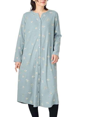 ANGELIEBEのマタニティ前開きパジャマは、スムース素材で作られており、ティータイムモチーフが可愛いデザイン。長袖で授乳も楽々、産前産後に最適。ポケット付き、入院や出産準備におすすめのLサイズ・サックス色です。
