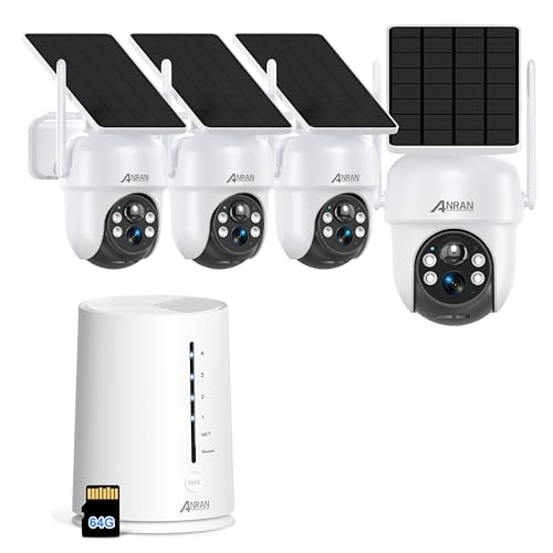 ANRANの400万高画素防犯カメラセットは、完全無線で工事不要。ソーラー一体型、高容量バッテリー、360°広角撮影、355°パン、90°チルト、双方向通話、PIR人体検知、最大4台追加可能。