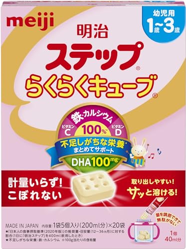 明治ステップ らくらくキューブ560gは、1歳から3歳頃のフォローアップミルクです。28gの個包装が20袋入りで、手軽に栄養を補給できる便利な商品です。