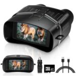 aierboのデジタル赤外線ナイトビジョン双眼鏡。350mの暗視性能、4K撮影、7段階赤外線ズーム、3インチHDディスプレイ、防水設計。狩猟や野生生物観察に最適。日本語説明書付き。