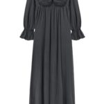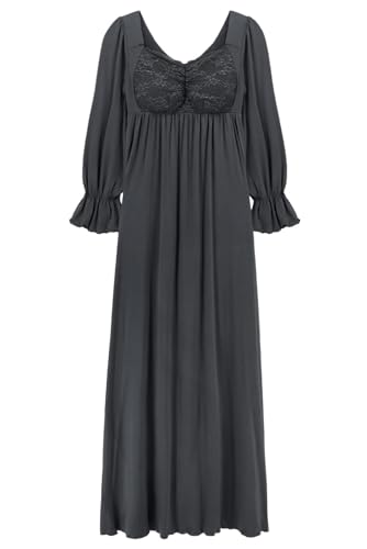 ツーハッチのナイトブラ一体型ワンピースは長袖でマキシ丈、ノンワイヤー設計。カップ付きで授乳やマタニティにも対応。色はチャコールグレー、サイズは75Mです。