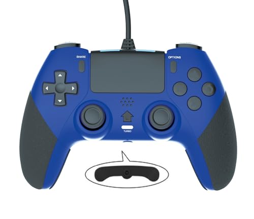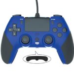 プレイステーション4用有線コントローラー。高度なプログラミングボタン搭載、デュアル振動、PS4/PS4 Slim/PS4 ProおよびPCに対応。カラーは青。