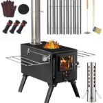 AVOFORESTの薪ストーブは、キャンプ用の折りたたみ式で、7段階の煙突調整が可能です。耐熱ガラスとグリッド棚付きで、コンパクト収納が可能。スチール製で耐熱塗装が施され、アウトドアや冬の暖炉、バーベキューに最適です。