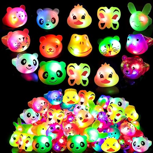 光る指輪おもちゃ27個入り。動物デザインでお祭りや縁日の景品に最適。子どもから大人まで楽しめ、6歳以上対象。キラキラ光るリングでライブ用にもおすすめ!