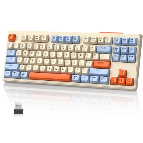 MAMBASNAKE+ZiYouLang M87は、ワイヤレスのBluetooth/2.4GHz対応、87キーのメンブレン式テンキーレスキーボード。最大3台のデバイスとマルチペアリング可能。静音設計で軽量、小型、iPadやWindows、Mac、iOS、Android対応。
