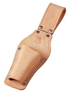 フジ矢のニッパ・電ドラホルダー AH-32BGは、黒金のLIGHT PU LEATHERシリーズです。軽量で耐久性に優れ、持ち運びやすさを追求したデザイン。作業時の工具の出し入れもスムーズで、現場での使い勝手を考慮したアイテムです。