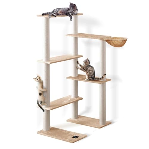 ottostyle.jpのキャットツリーPARTHENON190は、高さ190cmの据え置き型で、角設置可能な多頭飼い向けアイテム。ハンモックセットやL字型、爪とぎ機能、紐巻きデザインが特徴。