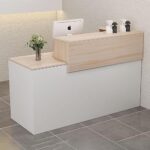 木製のレジ台は、幅100cm、120cm、140cmのバリエーションがあり、サイズは140x60x95.6cmです。贅沢感のあるデザインで、婦人服店やビューティーショップに最適です。