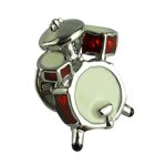 シルバー色のドラムセットデザインのラペルピンです。楽器愛好者やミュージシャンに最適なアクセサリーで、ジャケットやバッグにぴったり。おしゃれで目を引くアイテムです。