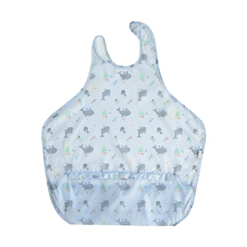 SMORbiのお食事エプロンは、長袖で一体型のデザイン。吸盤付食器使用可能で防水性があります。袖なしノースリーブのシーフレンズ柄は、男の子・女の子どちらにもおすすめ。赤ちゃんの離乳食時にぴったりのおしゃれなアイテムです。