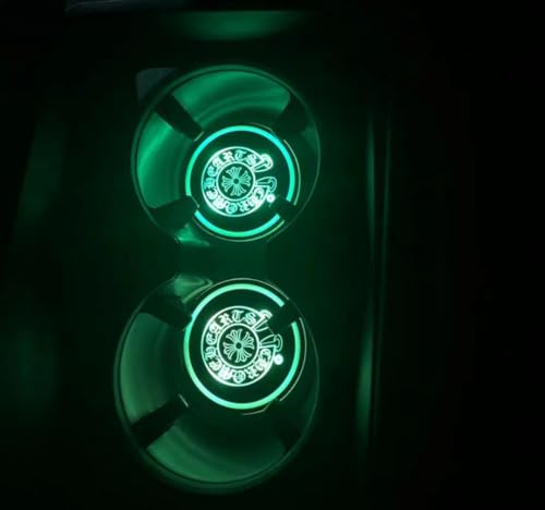 LEDコースターは自動点灯・消灯機能付きで、車内をイルミネーションします。丸型でドリンクホルダーにフィットし、2個セットで提供。明るさセンサー搭載、雪花デザインでおしゃれ。