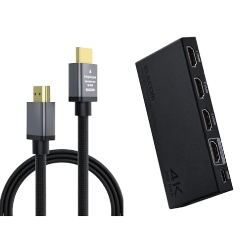 エレコムのHDMI切替器セットには、耐久性に優れた2mのプレミアムHDMIケーブルと、3入力1出力のHDMI切替器が含まれ、4K60Hzに対応。自動・手動切替機能も完備。