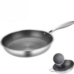 チタン合金の28cmフライパンは、7層構造で耐久性が高く、ノンスティック仕様。オール熱源対応で、煙霧なしの健康的な調理が可能。ガラスカバー付きで便利な深型デザイン。