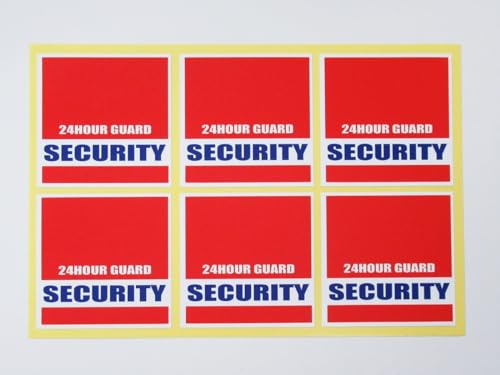 24時間セキュリティシールステッカー小サイズ赤四角6枚セット。英語表記で防犯効果を高め、空き巣対策にも最適。ダミー防犯カメラ録画中の表示。日本製で信頼性も抜群。