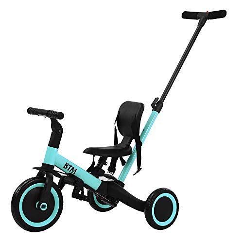 Laovyarwの4in1子供用三輪車は、ミント×ブルーのデザインで、押し棒付き。自転車や乗用玩具として楽しめるグリーンカラーのおもちゃです。