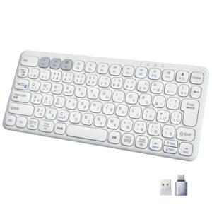 Ewin キーボード Bluetooth ワイヤレス 無線 2.4GHz(USBレシーバー付属)コンパクト Type-C充電式 JIS基準 日本語配列 静音 薄型 軽量 人間工学設計 マルチペアリング 三台デバイス対応 PC iPad スマホ用 Windows Mac iOS Android対応 持ち運び簡単 日本語取扱説明書付き ホワイト