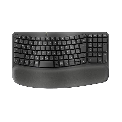 ロジクール WAVE KEYS K820は、疲れにくいエルゴノミックデザインのBluetoothワイヤレスキーボード。日本語配列、テンキー搭載で、Windows、Mac、Chrome、Androidに対応。パームレスト付き。