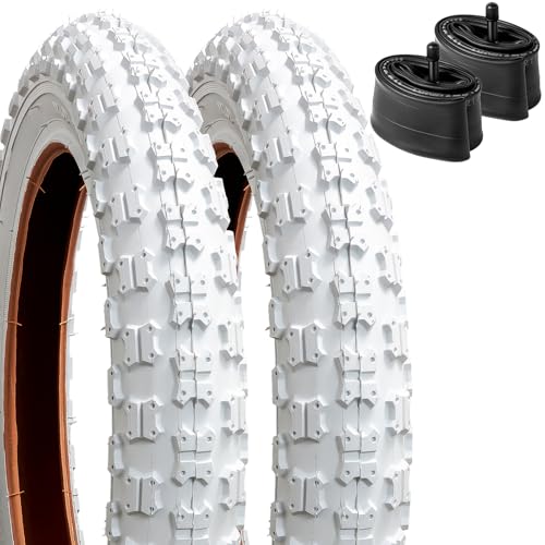 YunSCM 2本セットの12 1/2×2 1/4タイヤ(ホワイト)と肉厚チューブ(SV米式バルブ32mm)です。12 1/2×2 1/4サイズの子供自転車に適用します。型番Y-1306(白)。