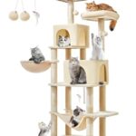 Taoqimiaoキャットタワーは170cmの大型猫用で、7本の爪とぎポール、2つの止まり木、2つの隠れ家、2つのハンモック、ポンポン付きの豪華な多段式設計です。色はベージュ。