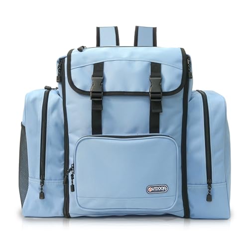 [アウトドアプロダクツ]のリュックは、大容量で拡張機能付きの林間バッグです。修学旅行やキャンプに最適で、無地のデザインが魅力的です。