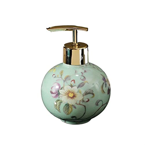 このハンドソープディスペンサーは、ペイントセラミック製でフラワーイラストが施されています。手動ポンプ式で、バスルームやキッチンの装飾にも最適です。フォームソープやシャンプーにも使用でき、洗面所を華やかに演出します。