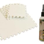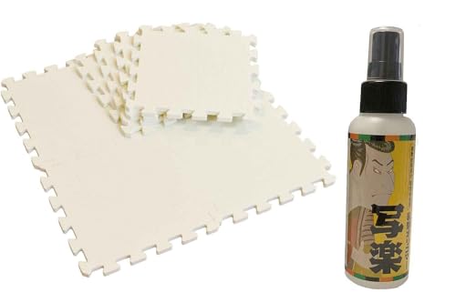 ユノックスの極厚ジョイントマットは、アイボリー色で8枚x2の16枚セット。サイズは約30x30cm、厚さ約1.4cm。防音、床の傷防止、衝撃吸収、断熱効果を備え、キワミスト付きです。