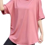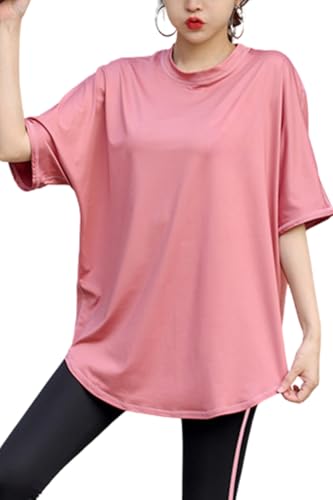 VeroManのヨガウェア レディース トップスは、体型カバーに優れたロング丈Tシャツ。ピラティスやヨガに最適なピンクの色合いで、Mサイズ展開。快適な着心地とスタイルを両立。