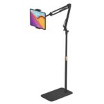 伸縮式フロアスタンドは、高さ50-150CM調整可能。約2.0KGの強化土台で安定性抜群。4.7-15.6インチのタブレットやスマホに対応し、360°回転、角度調整が可能。寝ながら快適に使用できます。