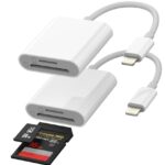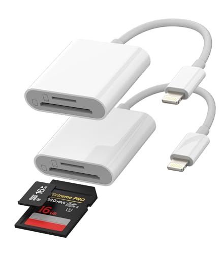 Lightning変換アダプター2個セット。iPhoneやiPadに対応し、SDカードやMicro SDからのデータ移行が可能。写真やデータの転送、バックアップに便利なアクセサリー。