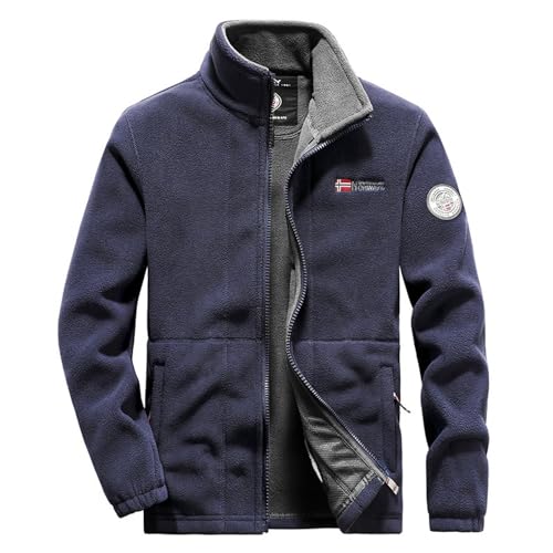 Manatsulife メンズ フリース ジャケット。暖かくてカジュアルなアウトドア用。フルジップタイプで保温性・防寒性・防風性に優れ、秋冬に最適。サイズL、カラーはブルー。