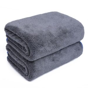 ATOKA 洗車タオル マイクロファイバークロス ダブルフェイスタオル 超吸水タオルクリーニング拭き上げ専用 傷つかない こだわり仕様60cm×90cm, ダークグレー 2枚入