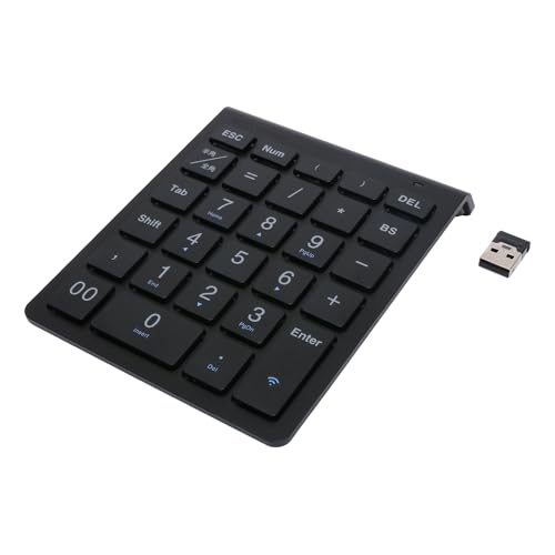 ミヨシのワイヤレスタイプのテンキー。USB-A接続、28キー配置で表計算に便利。軽量120gで電池2本使用、メーカー保証1年。