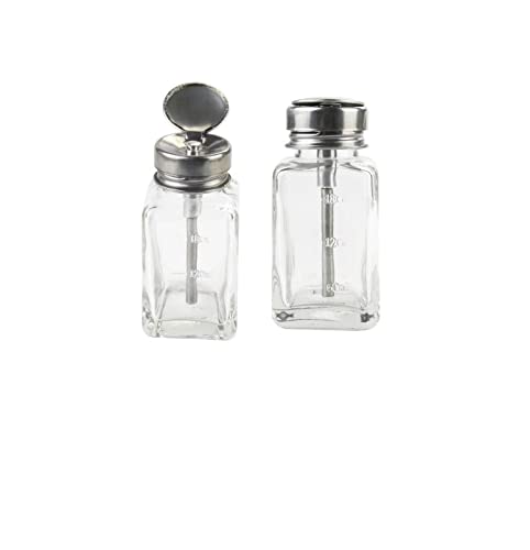 YORRORの180ml正方形ガラスディスペンサーボトル2個セット。フリップトップキャップ付きで詰め替え可能。アルコールやメイクアップリムーバーに最適。