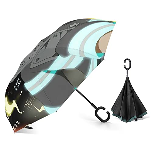 炎炎ノ消防隊のアニメ柄長傘。逆さ折り式で自立可能、ワンタッチ開閉。耐強風、濡れない高撥水仕様。晴雨兼用で熱中症対策にも最適。8本骨で丈夫、梅雨季節や車用に便利なユニセックス設計。