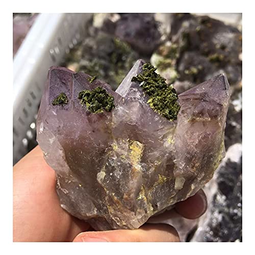 アメジストクラスターの天然鉱物標本で、スーパーセブンやグリーントルマリンも含まれています。クリスタルヒーリングに最適で、美しいビジュアルが特徴です。
