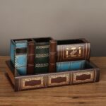 ブックイミテーションストレージは、アンティーク調のダミーブックデザインで、小物入れやペン立てとしても使えます。インテリアとしてもおしゃれで、収納スペースを兼ね備えています。