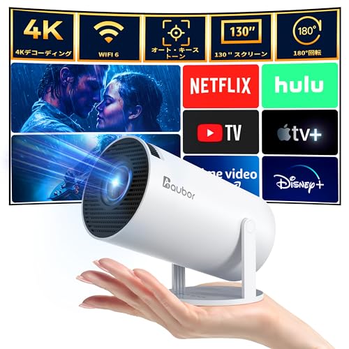【超小型&180°回転】aubor プロジェクター Android TV 11.0 高輝度 10000lm 家庭用 4K対応 5GWiFi Bluetooth5.2 自動台形補正短距離投影 HIFIスピーカー内蔵天井投影 iOS/Android/Windows/TVStick/HDMI/USB/PS5/DVDプレイヤー接続可 日本語取扱書の製品情報