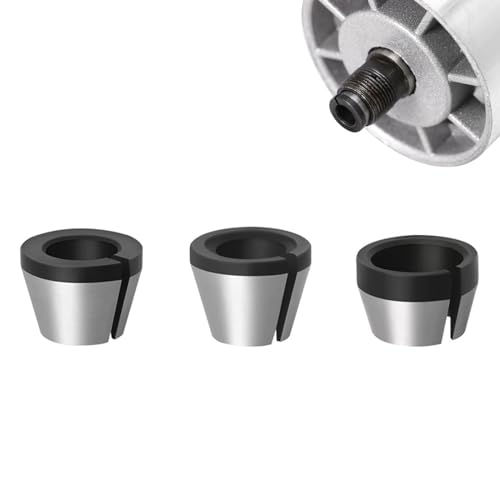 3本セットのコレットチャックは、トリマーや彫刻機用の部品交換用です。サイズは6mm、6.35mm、8mmで、DIYや電動工具に最適なトリマーアクセサリです。