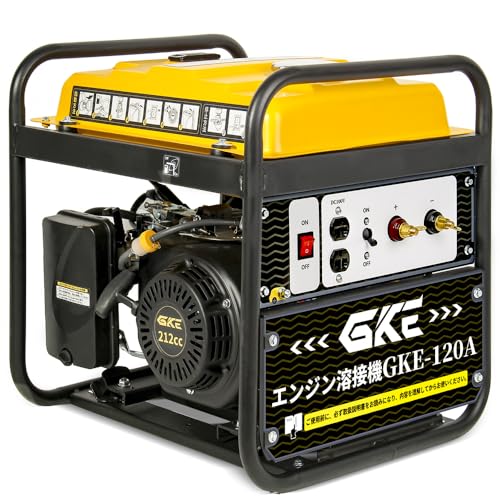 GKE純正のガソリンエンジン溶接機は、最大出力1.0kVA、DC120Aの直流溶接電源を提供。使用溶接棒は1.4~3.2mm、連続運転時間約3.0h。軽量・小型で現場移動も便利、一年保証付き。