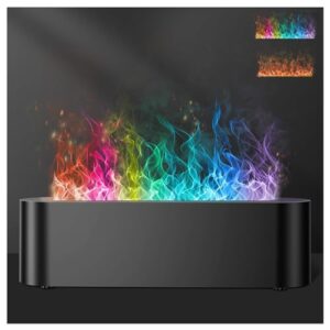 アロマディフューザー -加湿器 卓上【7色LED 炎アロマ】小型 加湿機 超音波式 おしゃれ タイミングデザイン 空焚き防止 1台両役 空気浄化機 150ml USB給電式 ディフューザー アロマランプ ナイト 25dB静音 軽量 black