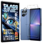 【RISE】 Xperia 5 v 用ガラスフィルム(ブルーライトカット)。強化ガラス、0.26mm、硬度10H、2.5Dラウンドエッジ。日本製旭硝子使用で高透過・指紋防止。気泡ゼロ、自動吸着、撥水撥油機能。カメラ用レンズフィルムも付属。