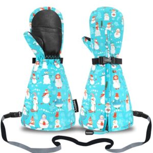 Andake 子供用スキー ミトン 冬用暖かい防水 長款幼児用雪用手袋 1〜6歳の男の子と女の子向けの簡単に着脱できるジッパー付き