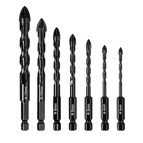 YUNXIASW 7本セットコンクリート ドリル ビット ドリル 穴 開け 工業用カーバイト先端 電動ドリル 角ビット鋳物の穴あけ用 (3/4/5/6/8/10/12mm) 収納ケース付きの製品情報