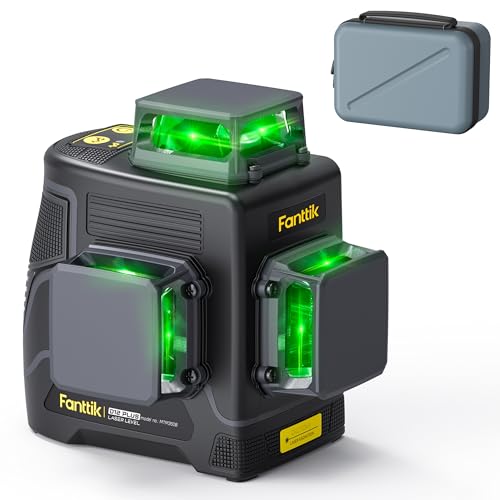 Fanttik D12 PLUSは、3×360°のグリーンレーザーで12ラインの自動水平補正機能を備えています。5200mAhのUSB-C充電式バッテリー、IP54防水防塵、耐衝撃設計。専用収納ケース付き。