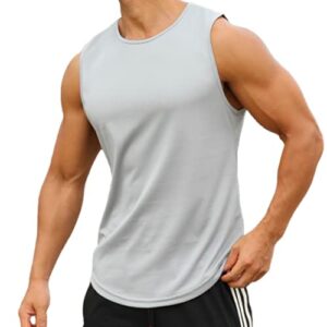 [OKIYA] タンクトップ メンズ トレーニングウェア スポーツウェア ノースリーブ フィットネス 吸汗速乾 通気 伸縮 筋トレ おしゃれ 運動 ジム ヨガ 部屋着 ダイエット 大きいサイズ 【商標2020-116094】 (グレー, XL)