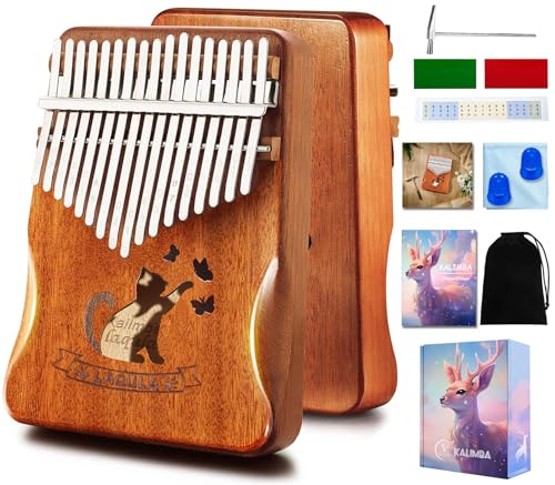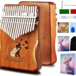 カリンバ17キーのマホガニー製親指ピアノ初心者セットです。チューニングハンマー、フランネルバッグ、楽譜、カタカナ音階シール付き。子供から大人まで楽しめるギフトに最適。
